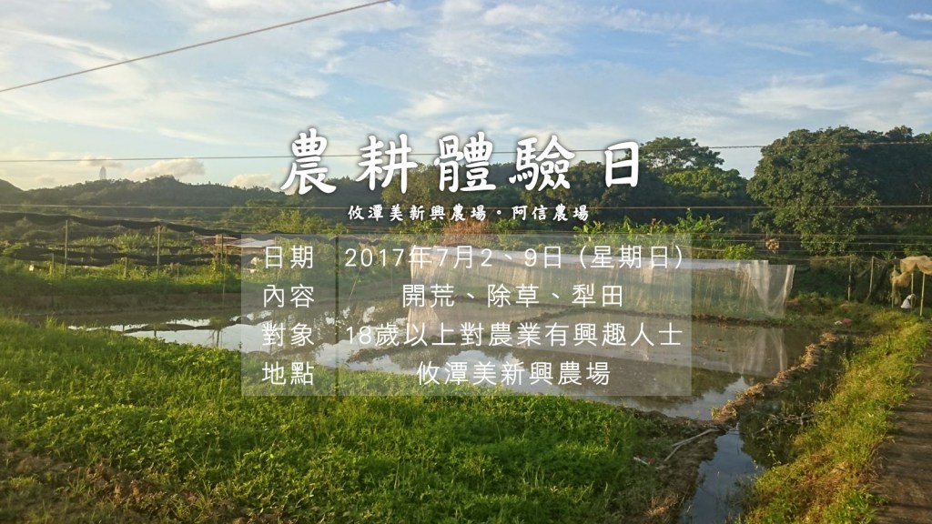 在信哥的指導下,去年我們再一次嘗試將農田活化未竟全功,今年年輕農夫的加入下再接再厲,希望種出稻米之餘,也能重新培植出本地種的稻米。另外,我們也會在農地種植不同作物如粟米、瓜類,希望復育農田。