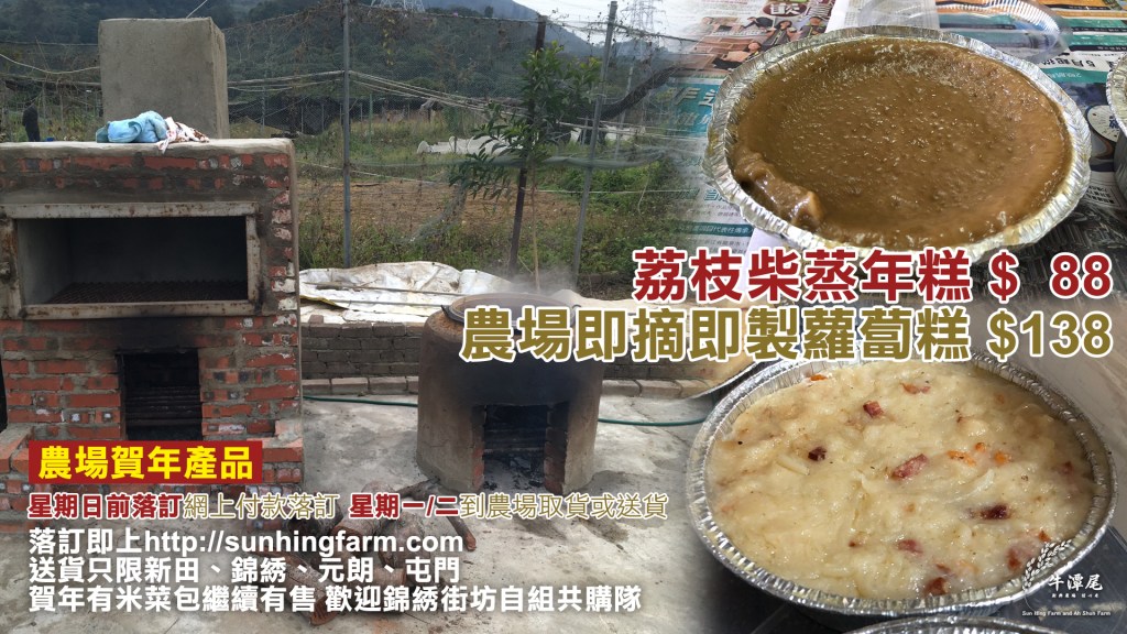 農場柴火蒸蘿蔔糕/年糕極受歡迎,有興趣的街坊,把握機會落單啦!最快星期一/二農場取或送貨(錦綉以外3底起/買埋菜包/滿500元)
